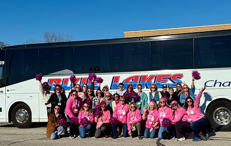 After doing this trip for 18 years, though, I had no qualms about aborting the mission with no shame - and pouring more wine. I have learned that more wine always seems to fix any of my flubs. But here’s the trick - BABY POURS. Wine on a sloshing bus ride? Our cups always look full to the BRIM, yet we arrive in Chicago calm, cool and clear-headed. It’s my greatest illusion.